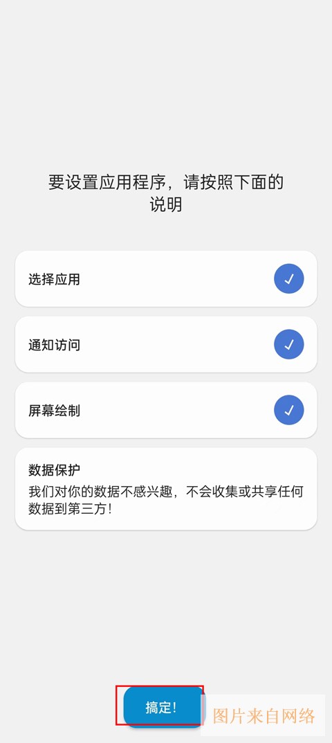1、首先我们需要给予软件的下方的所有权限,给予全部权限之后,然后点击搞定进入到功能界面。