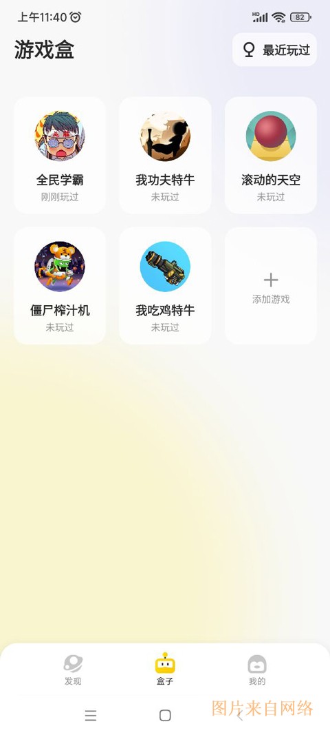 3、点开盒子,玩家可以查看你最近玩过的游戏,这里小编玩了全民学霸、我功夫特牛、滚动的天空等热门游戏;
