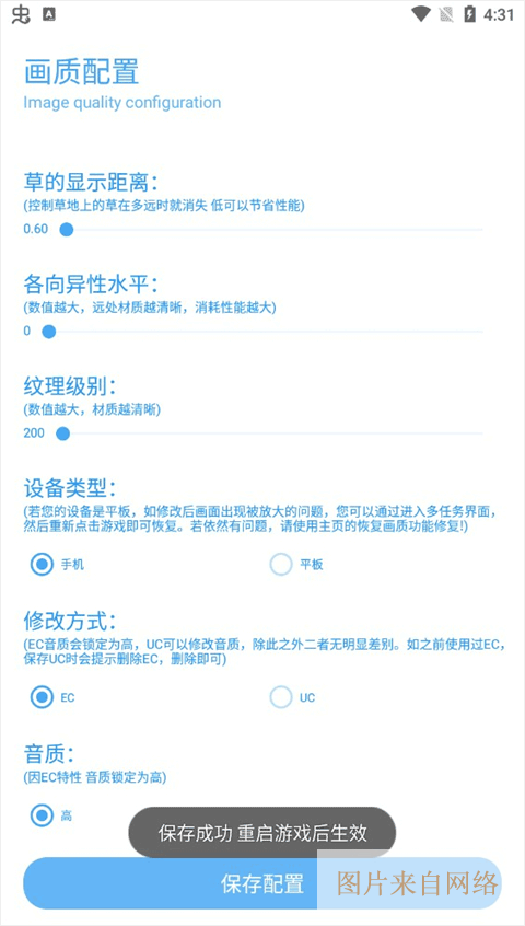 4、保存配置之后就会弹出成功信息,重新启动游戏就可以体验了。
