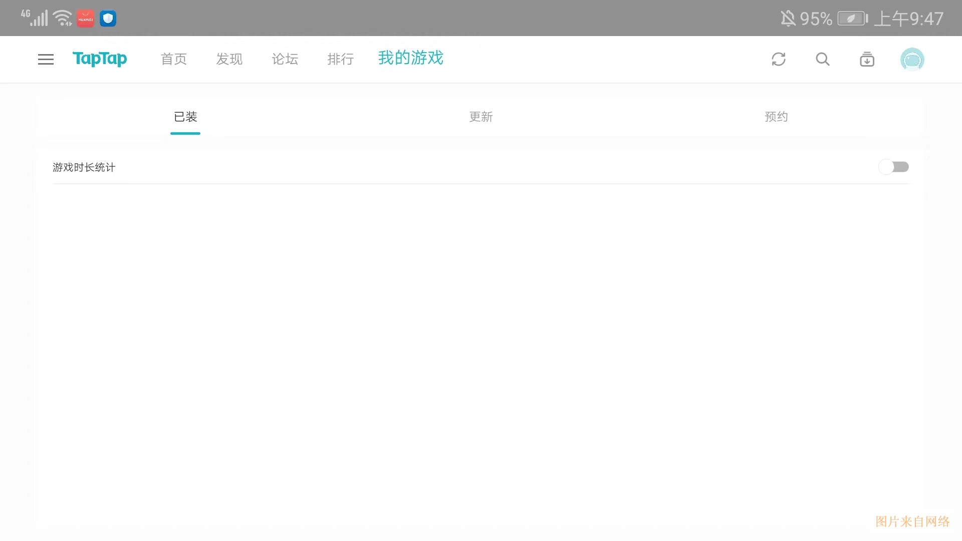 7、进入【我的游戏】界面,可以看到当前用户已装、更新和预约的游戏信息,