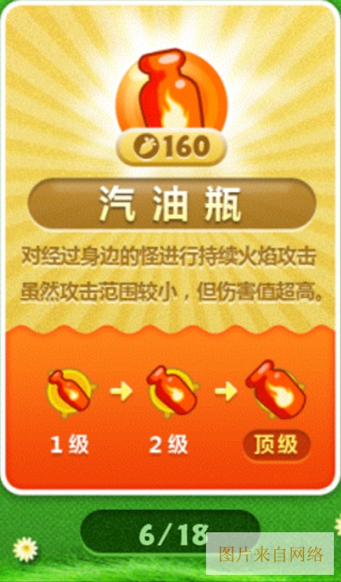 “对经过身边的怪进行持续火焰攻击,虽然攻击范围较小,但伤害值超高。”