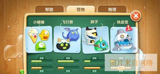 在这里还可以查看当前解锁的炮塔属性、以及游戏中的怪物