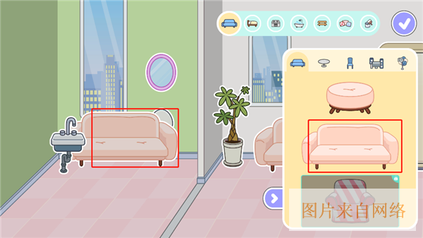 4、里面为用户提供了非常丰富的家居,如沙发、桌子、洗手台、床、浴缸等等,玩家可以自己选择你想要的家居;
