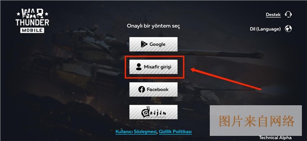 1、在本站下载安装战争雷霆手游之后,选择账号登录,也可以点击第二个选项的【游客登录】。