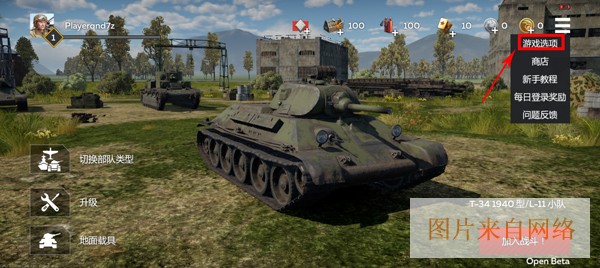 1、打开战争雷霆手游,进入游戏大厅后,点击右上方菜单,找到【游戏选项】,点击进入;