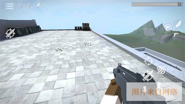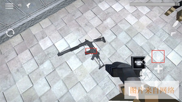 1、打开g沙盒仇恨最新版,想要拿枪就必须先找到一把枪,找到枪后需要将准心放到枪上,这时屏幕左边会出现一个手指按钮,按住手指按钮即可拾取;