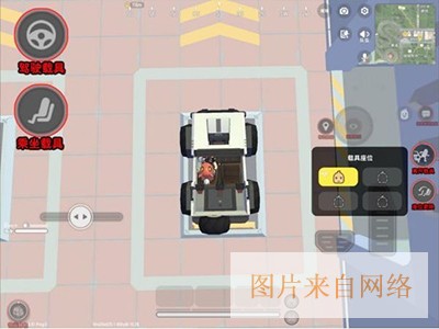 进入载具「载具操作按钮」消失,出现「载具驾驶按钮」「离开载具按钮」和「换座按钮」(点击后弹出座位选择框)