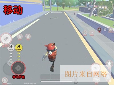 通过移动「摇杆按钮/移动罗盘」的上下左右拖动进行移动,按住划至「持续冲刺」黄色点亮并松手,锁定自动奔跑,效果同点击右侧「奔跑按钮」。