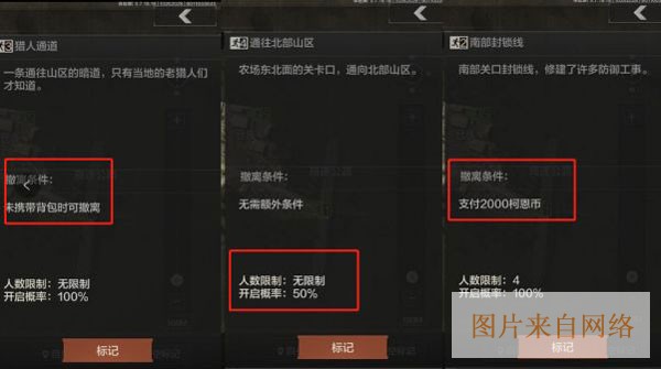A5:部分撤离点并不是可以100%撤离的;另外,有的撤离点是需要满足条件才能撤离。有的撤离点存在开启概率,不一定会开启,所以大家最好是选择100%概率的撤离点。