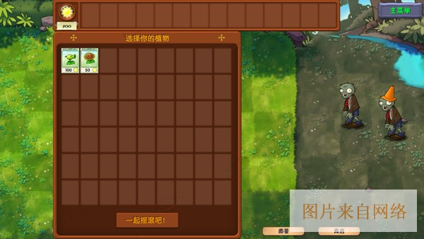 3、接着选择要上场的植物,选好后“点击一起摇滚吧!”开始游戏;