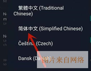 5、最后在打开的下拉选项中,点击简体中文,然后就设置好中文了。