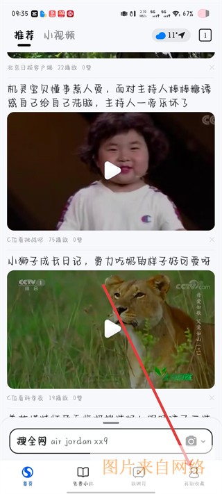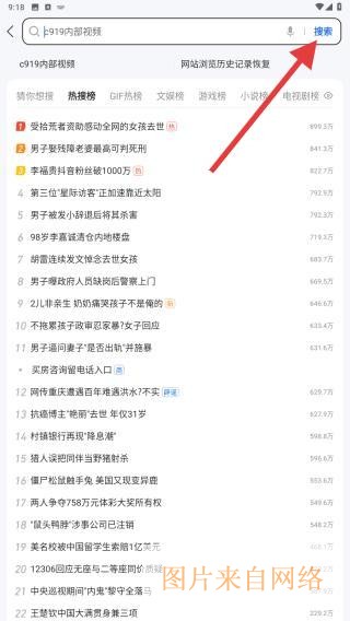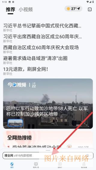 2、在推荐页面正下方有搜全网的显示,点击后可以输入相关的内容进行搜索。