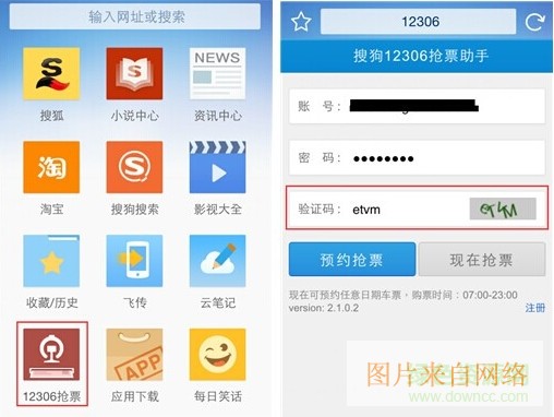 使用搜狗手机浏览器进行“一键约票”的操作十分简单,打开搜狗手机浏览器(安卓、iOS端均可),点击“12306抢票”功能,进入登录界面。值得一提的是,在登陆环节,搜狗手机浏览器会智能进行分析,自动填写12306网站的验证码,帮助大家节省了繁琐的输入过程。