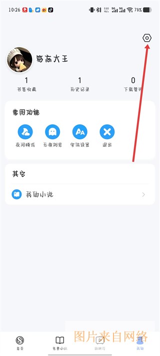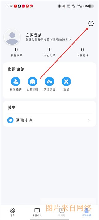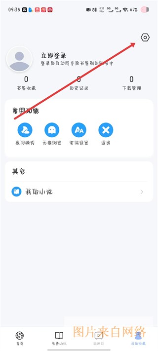 2、在个人功能页面右上角,找到设置图标并点击,进入浏览器的设置界面。