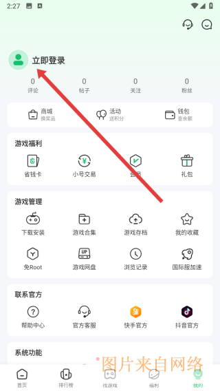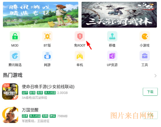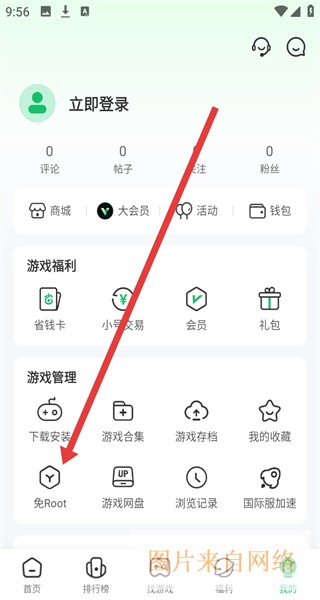 2、个人中心页面点击“免Root”,进入免ROOT页面。