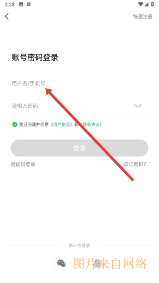 4、在勾选好同意按钮后,可以点击上方输入框依次填写账号和密码后点击登录,即可完成登录操作。