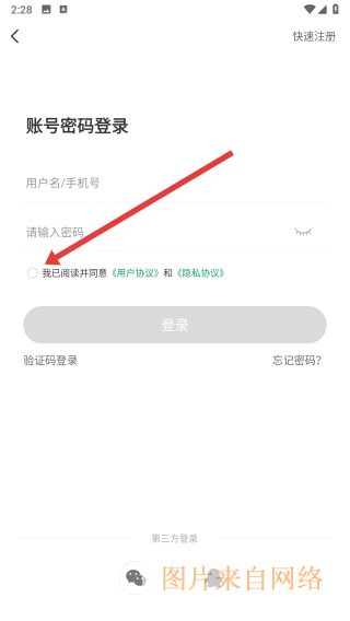 3、在进入到登录页面时,先需要点击勾选我已阅读并同意按钮后进行操作。