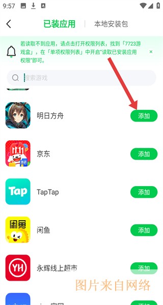 4、在已装应用页面点击对应游戏的“添加”按钮,完成免ROOT添加游戏操作。