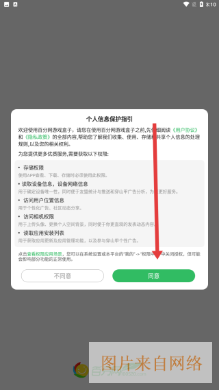 1、打开应用时,需阅读并点击同意个人信息保护指引,方可进入游戏平台主界面,开启游戏查找与体验流程。