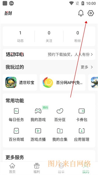 1、首先我们需要打开软件,在底部的任务栏中点击【我的】进入,接着点击右上角齿轮状的设置按键;