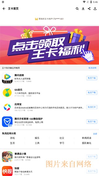 4、最后成为王卡用户之后,可免流任性下载所有app。