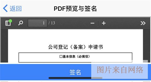 5、进入PDF预览与签名,可预览委托人所提交的材料,确认无误后点击下方「签名」。