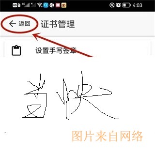 3、设计完签名后,点击“返回”