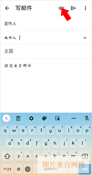 3、想要添加图片等附件的话,点击右上角的回形针符号;
