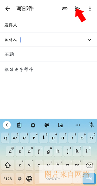 4、编辑完成之后点击右上角的纸飞机符号即可发送邮件。