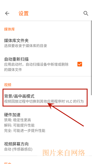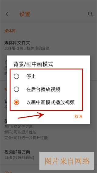 2、进入设置界面后选择“背景/画中画模式”,如下图所示。