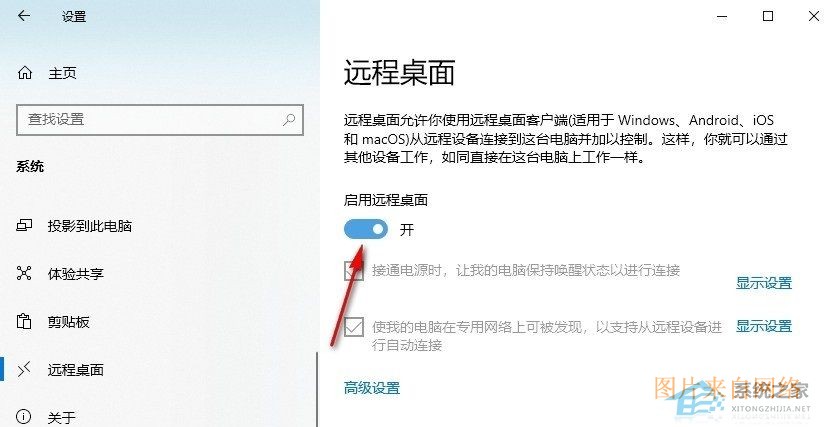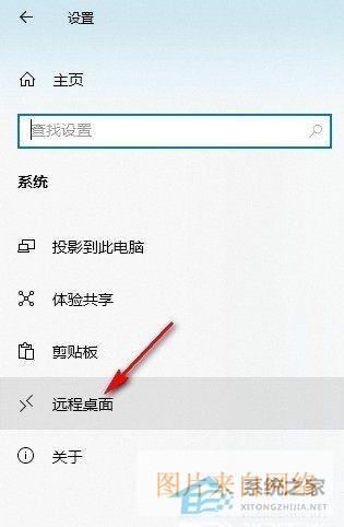 3. 接着我们在系统设置的左侧列表中找到“远程桌面”设置点击打开该设置。
